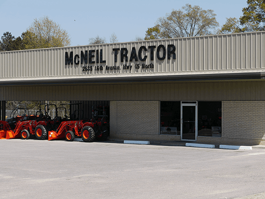If you're looking for quality equipment and exceptional services provided by trained experts, you've come to the right place. At McNeil Tractor, we pride ourselves on matching each customer's unique needs with the Kubota that will serve them best. We're glad you're here, where you can check out our inventory, order parts, schedule a service appointment or simply give us a call at 601-425-3158 and let us know how we can help you.